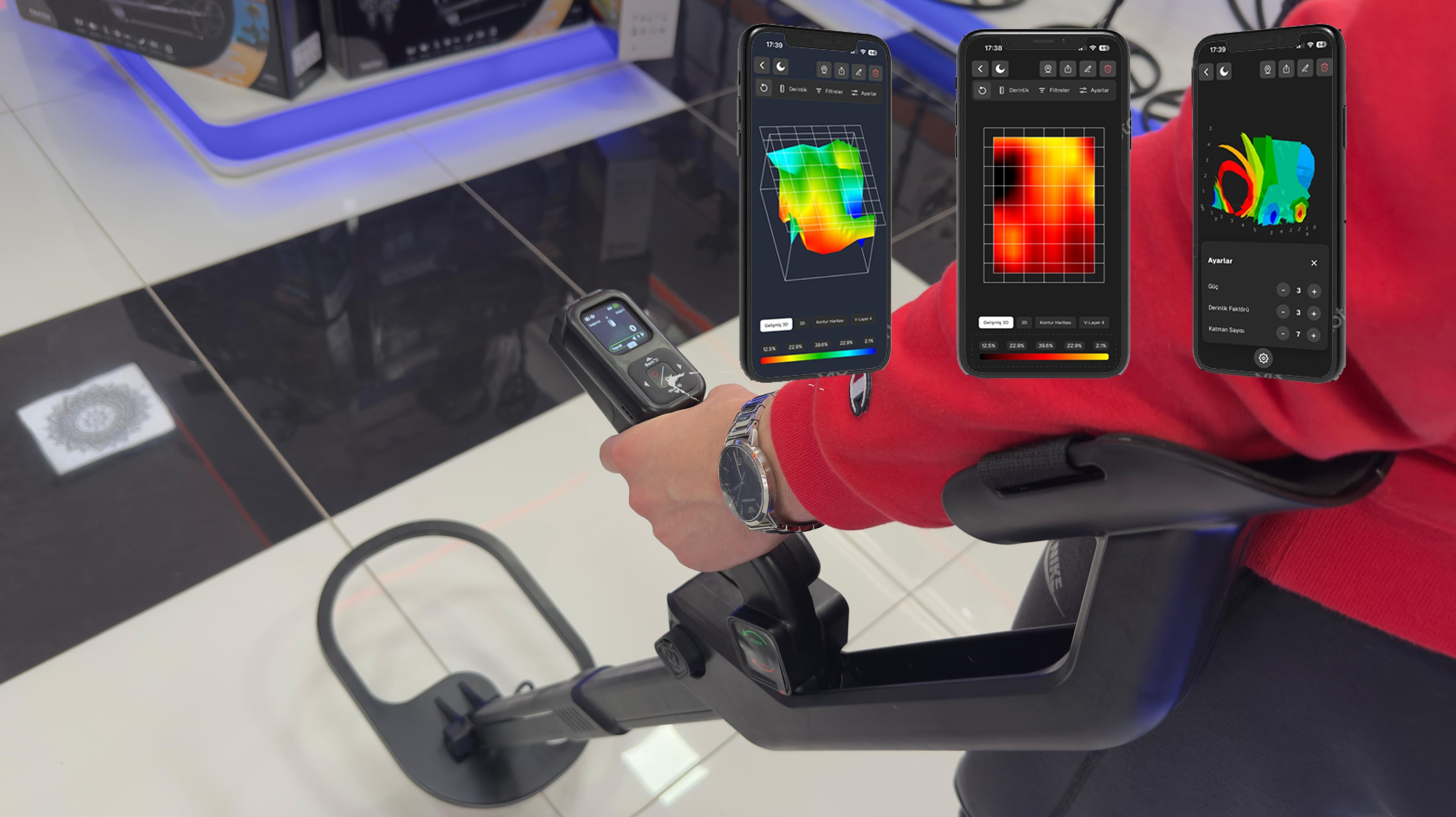 Yüksek çözünürlüklü renkli ekranı sayesinde Live Scan, Pointer ve 3D zemin tarama modlarında sonuçlarınızı anında görebilir, analiz edebilir ve hedeflerinizi net şekilde tespit edebilirsiniz.